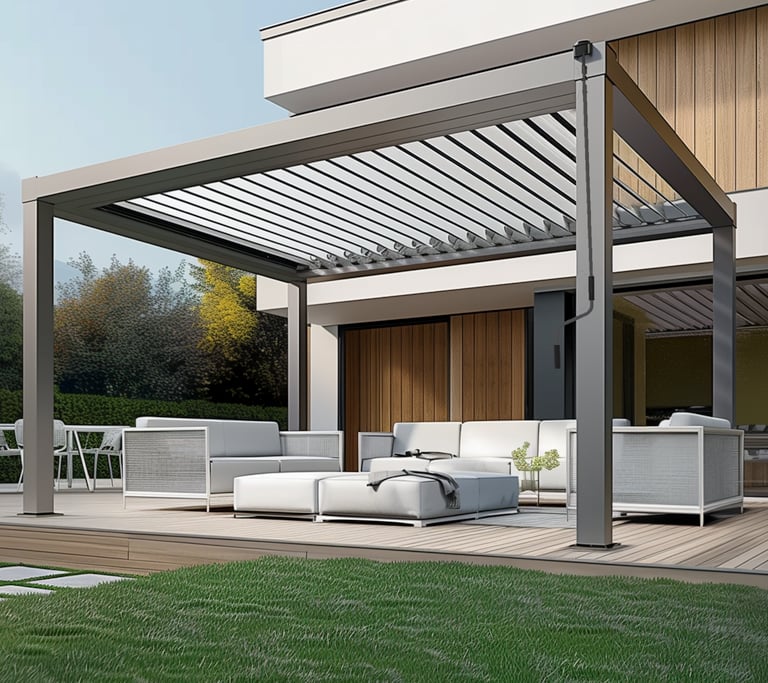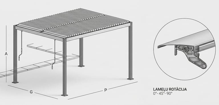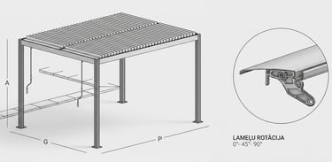 Izbaudiet stila un funkcionalitātes virsotni ar Lumia – alumīnija pergolu, kas aprīkota ar rotējošām lamelēm. Pateicoties fiksētiem izmēriem un manuālai vadībai, Lumia piedāvā nevainojamu kontroli un mūsdienīgu estētiku. Izvēlieties kādu no diviem pieejamajiem alumīnija rāmja apdares veidiem, lai papildinātu savas ārtelpas dizainu. Nodrošinot pilnīgu aizsardzību pret sauli, vēju, lietu un sniegu, Lumia garantē komfortu un mieru visa gada garumā.