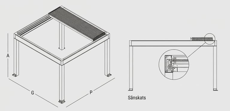 Bioklimatiskā pergola Natura – inteliģents komforts jūsu terasei.Pilnībā automatizēta un izbīdāma jumta sistēma, kas pielāgojas laikapstākļiem jūsu vietā. Baudiet ārtelpu neatkarīgi no saules, vēja vai lietus.