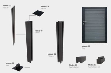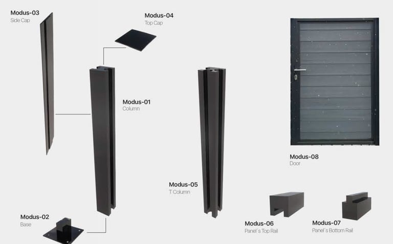 Modus – Augstas kvalitātes žogu sistēma no WPC un alumīnija. Izturīga pret laikapstākļiem, ar regulējamām durvīm un modernu dizainu. Pieejama vairākās krāsās, viegli pielāgojama jebkuram īpašumam.